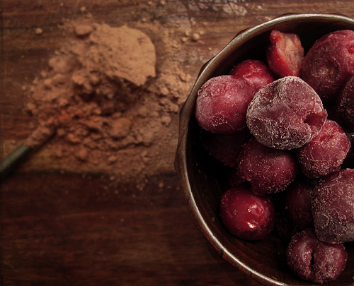 Blend together a cup of frozen cherries, 1 cup spinach, chocolate protein powder, 1 tbsp cocoa, 2 dates and as much water as you need for desired consistency.